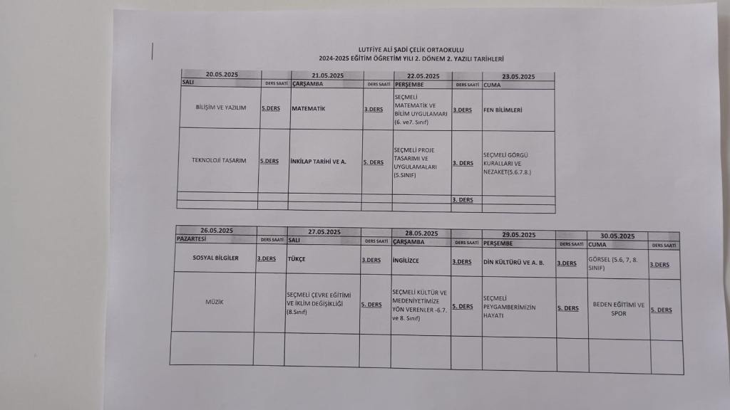 2024-2025 2 DÖNEM SINAV TARİHLERİ
